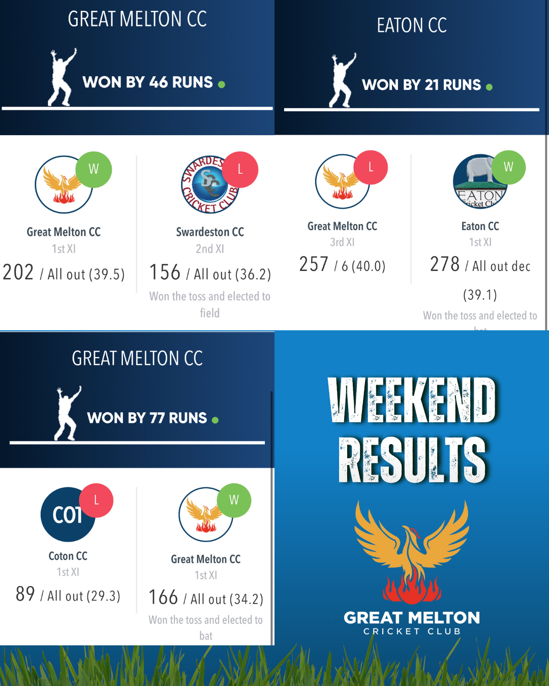 Well done to all teams this weekend - highlights below: 1st/A Team Friendly vs Swadeston (M.Cook 97, 3 wickets for [...]
