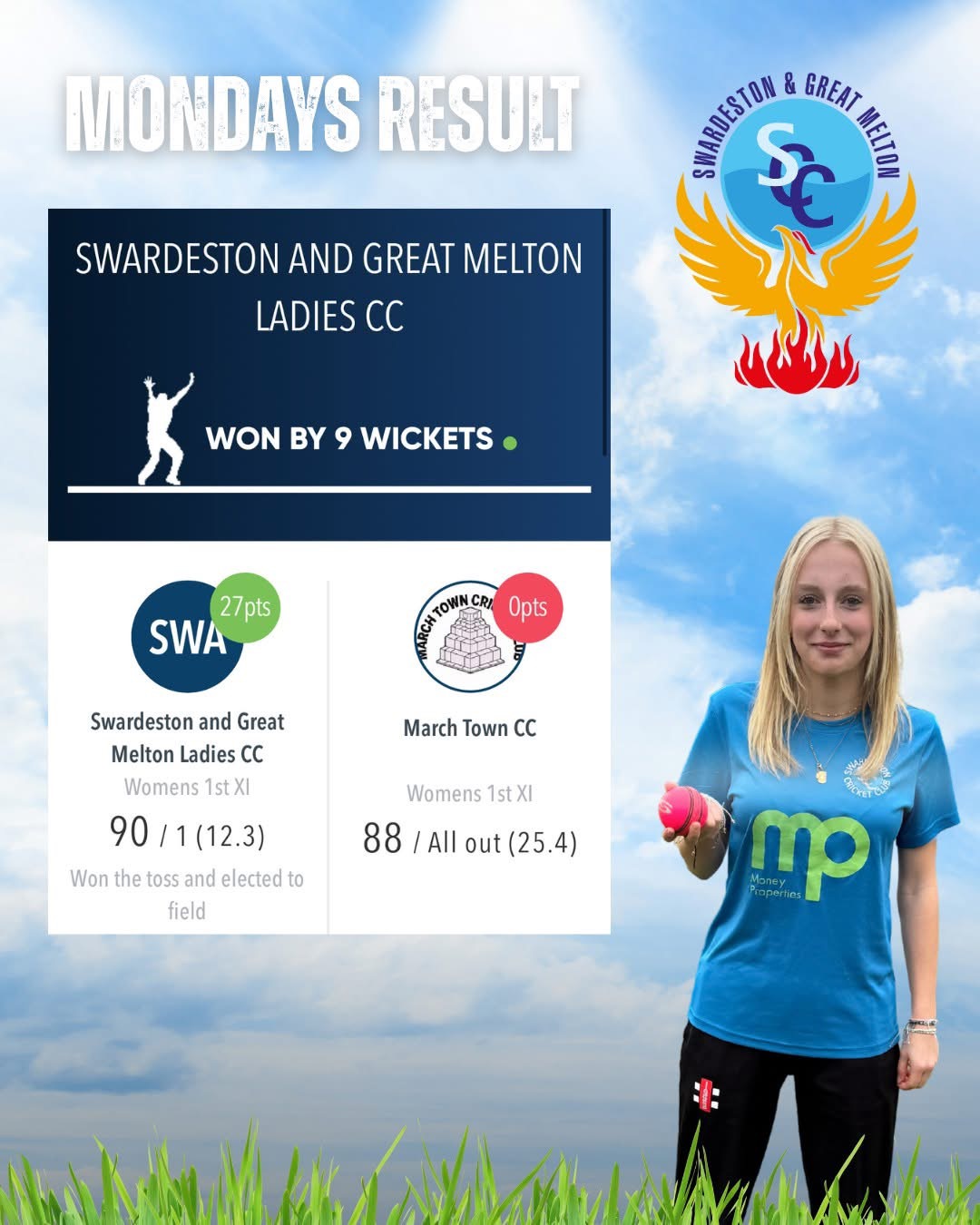 The ladies team lost by 32 runs against Winterton CC. We had 3 non-cricket mums and girlfriend in Caroline Mawby, [...]